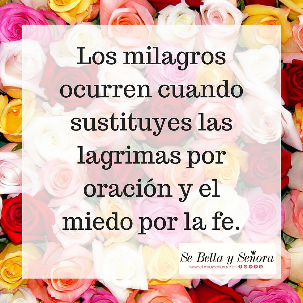 Los milagros existen!Zoraya Reichlin14 ago 20181 Min. de lectura Los milagros ocurren cuando sustituyes las lagrimas por oración y el miedo por la fe. Zoraya ReichlinSe Bella y Señora Blog #reflexion #pensamientospositivos #fe #esperanza #sebellayseñona #oracion #milagros